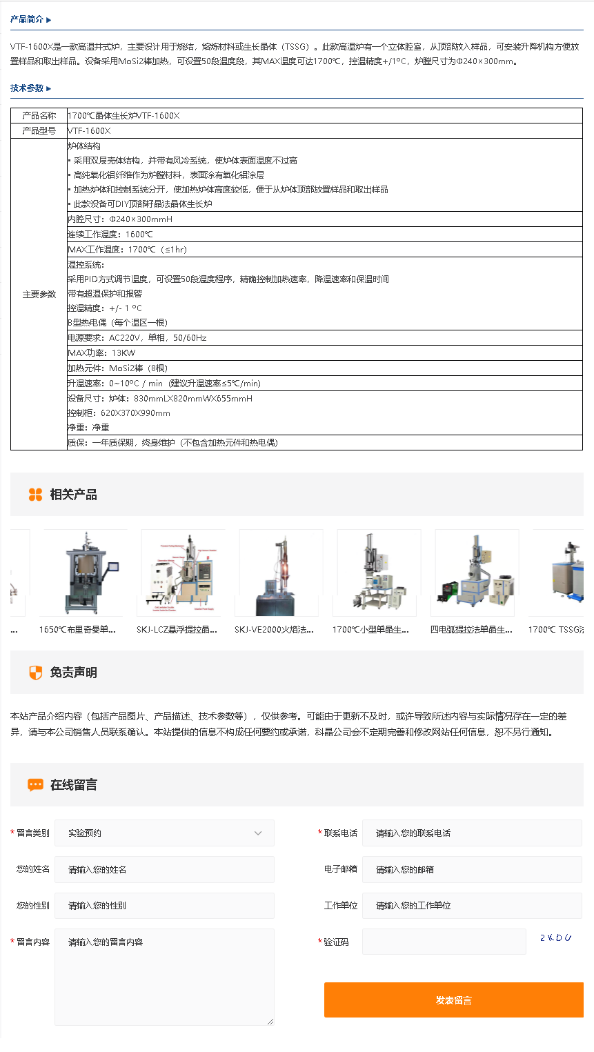 1700℃晶体生长炉VTF-1600X