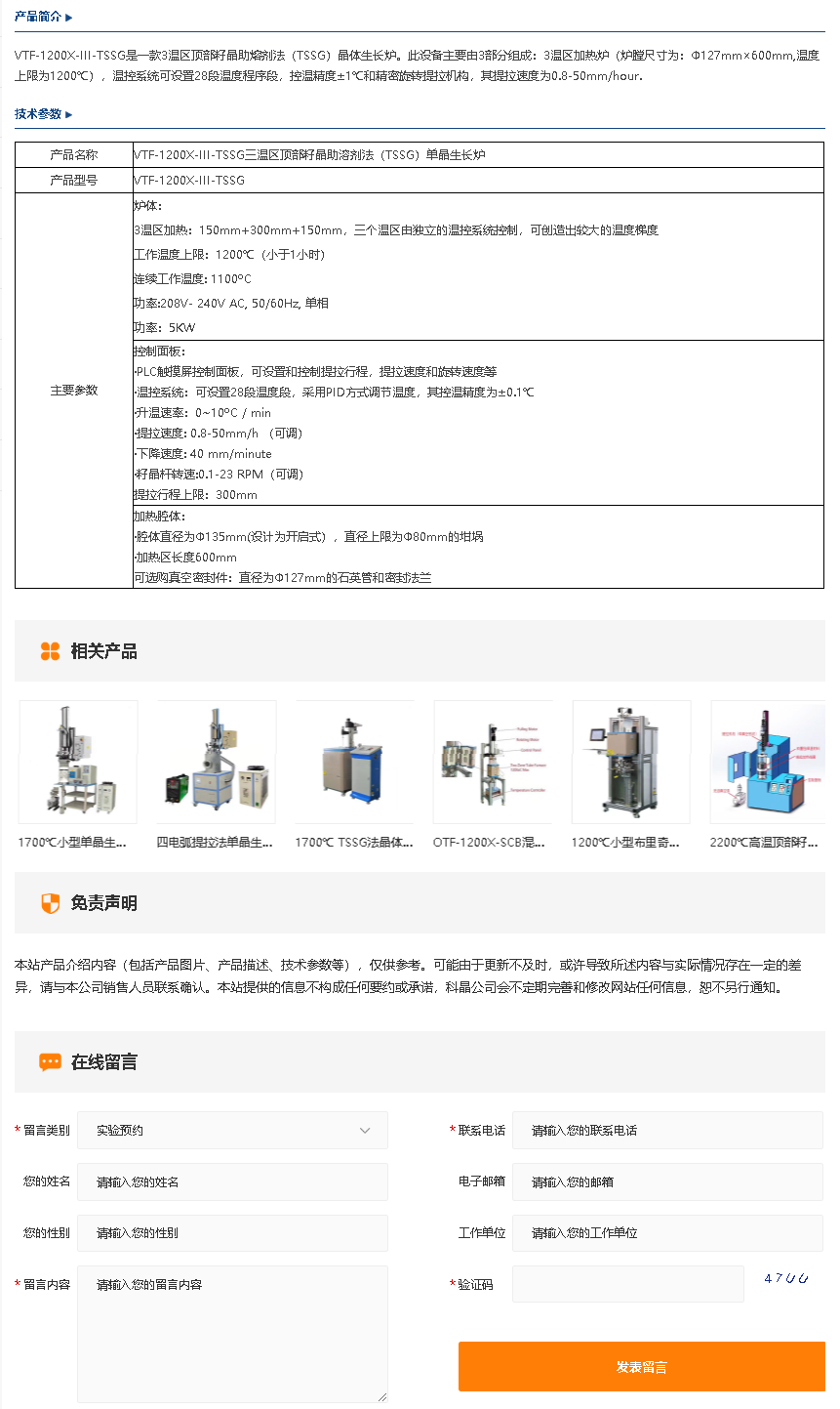 VTF-1200X-III-TSSG三温区顶部籽晶助溶剂法(TSSG)单晶生长炉