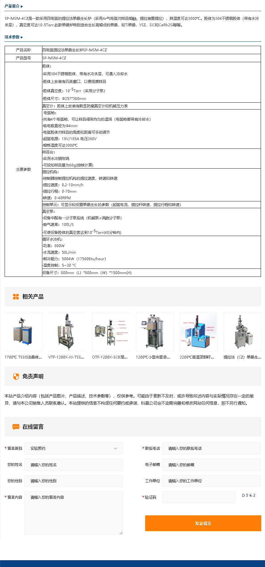四电弧提拉法单晶生长炉SP-MSM-4CZ