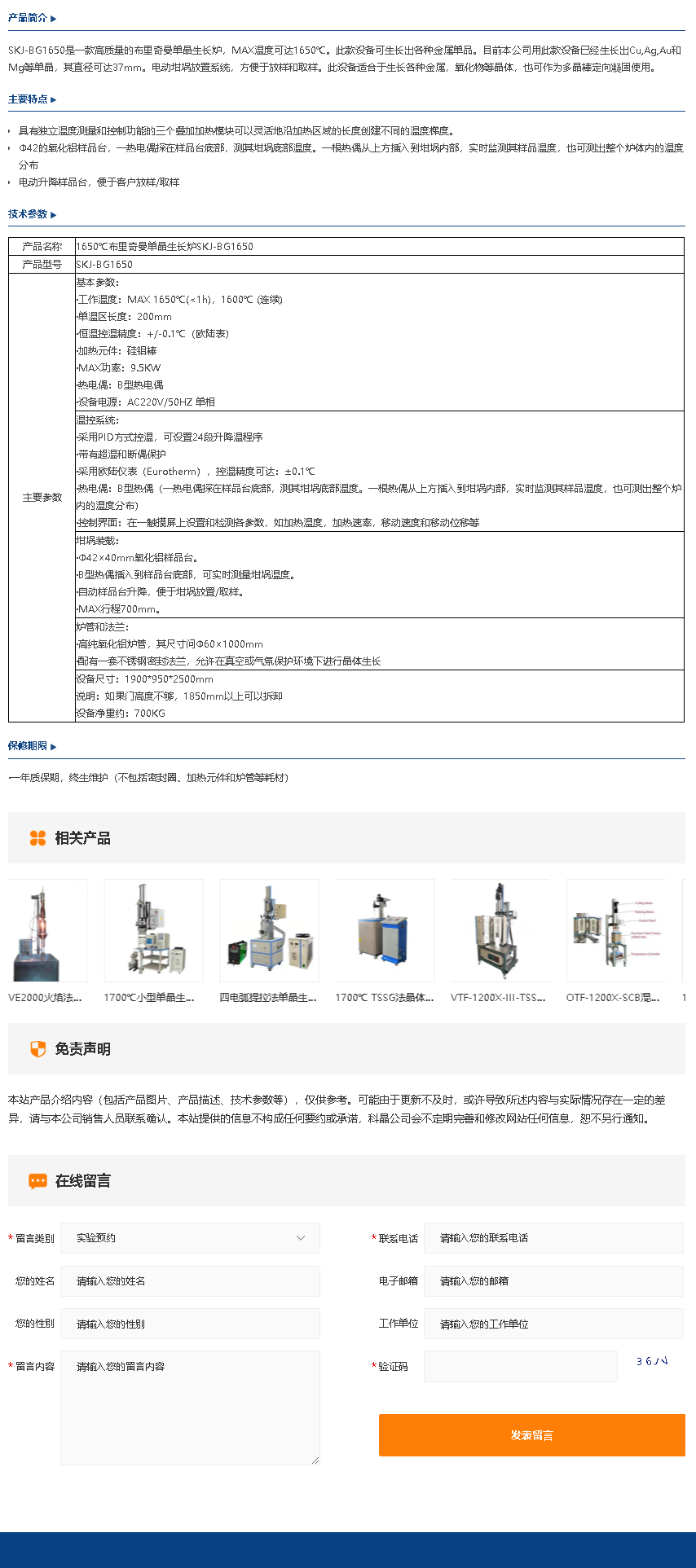 1650℃布里奇曼单晶生长炉SKJ-BG1650