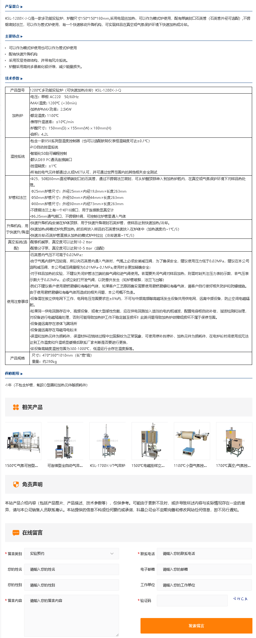 1200℃多功能实验炉(可快速加热冷却)KSL-1200X-J-Q
