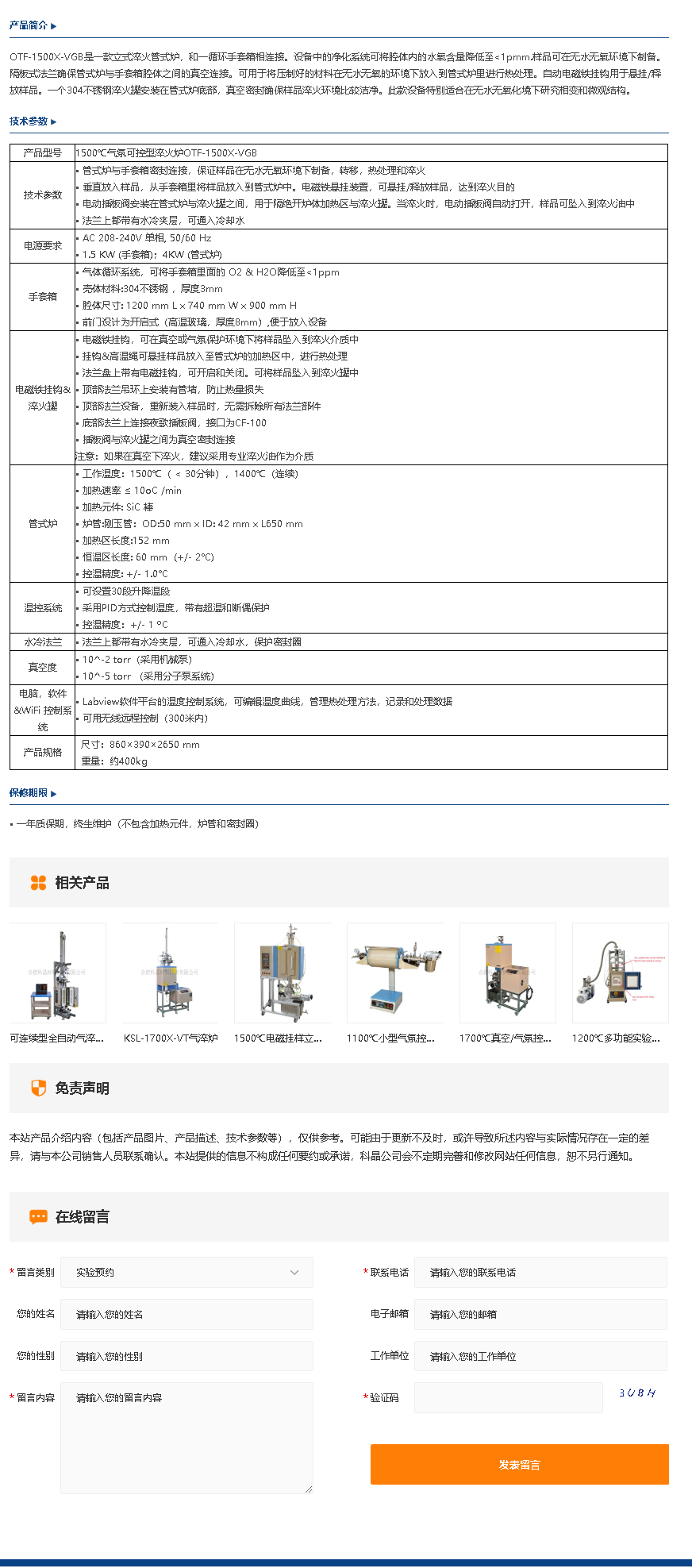 1500℃气氛可控型淬火炉OTF-1500X-VGB