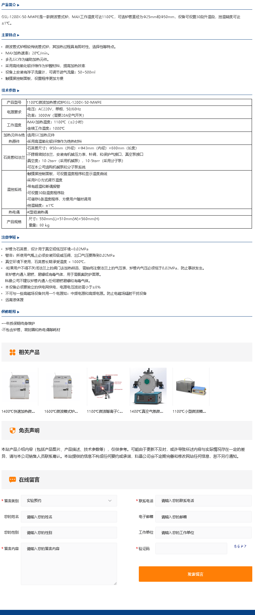 1100℃微波加热管式炉GSL-1200X-50-MWPE