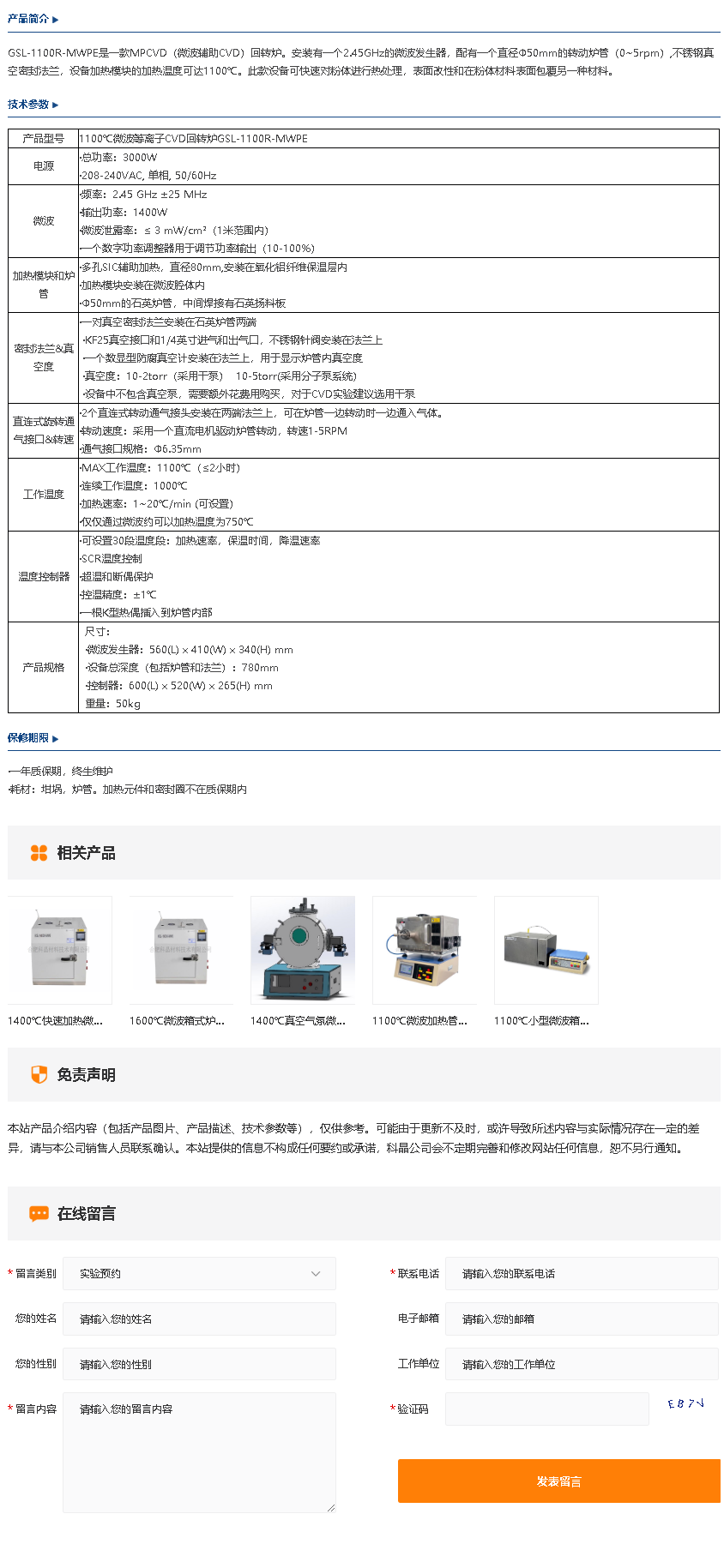 1100℃微波加热管式炉GSL-1200X-50-MWPE