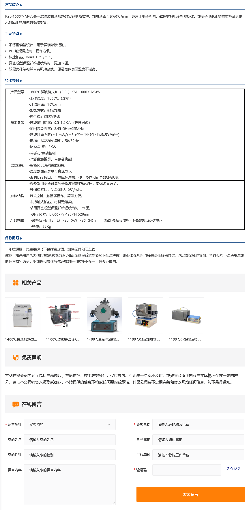 1600℃微波箱式炉(0.3L)KSL-1600X-MW6