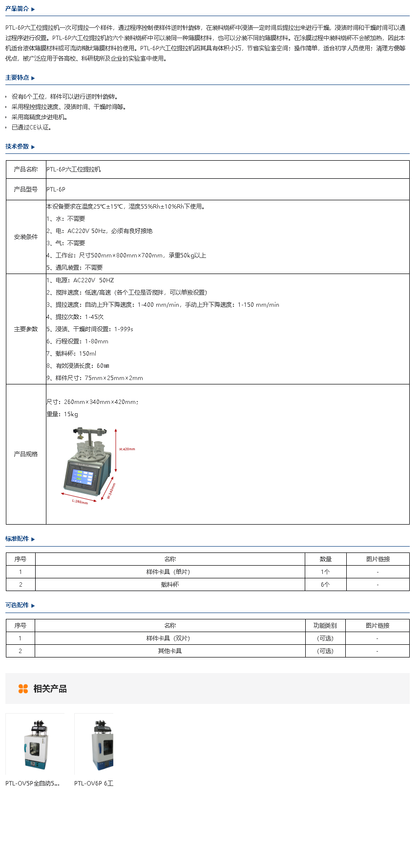 PTL-OV6P 6工位提拉涂膜机