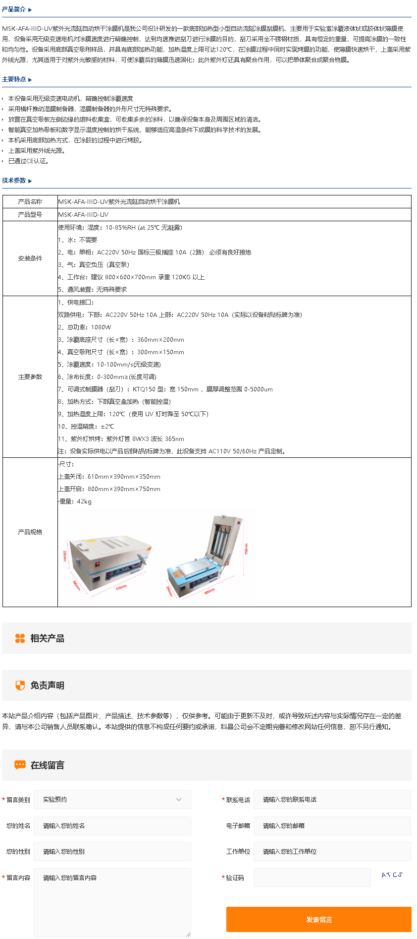 MSK-AFA-IIID-UV紫外光流延自动烘干涂膜机