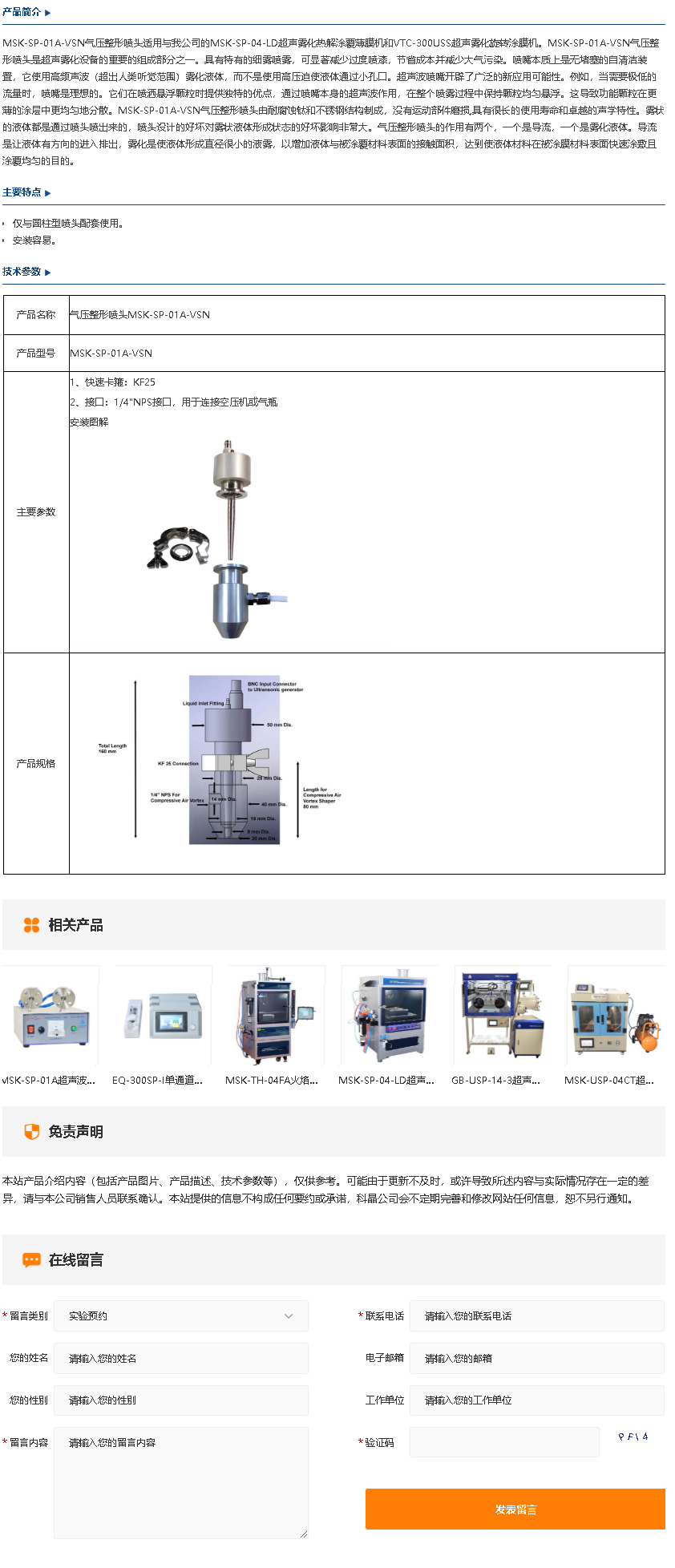 MSK-SP-01A-VSN气压整形喷头