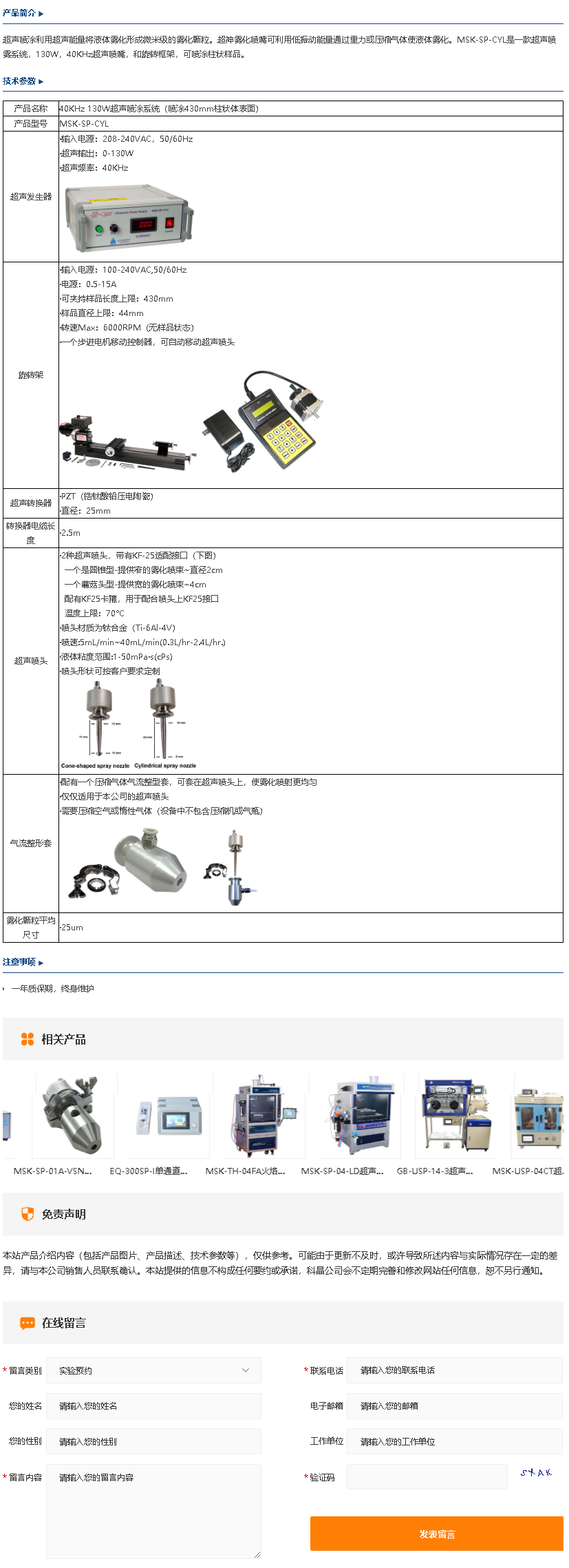 40KHz 130W超声喷涂系统(喷涂430mm柱状体表面)