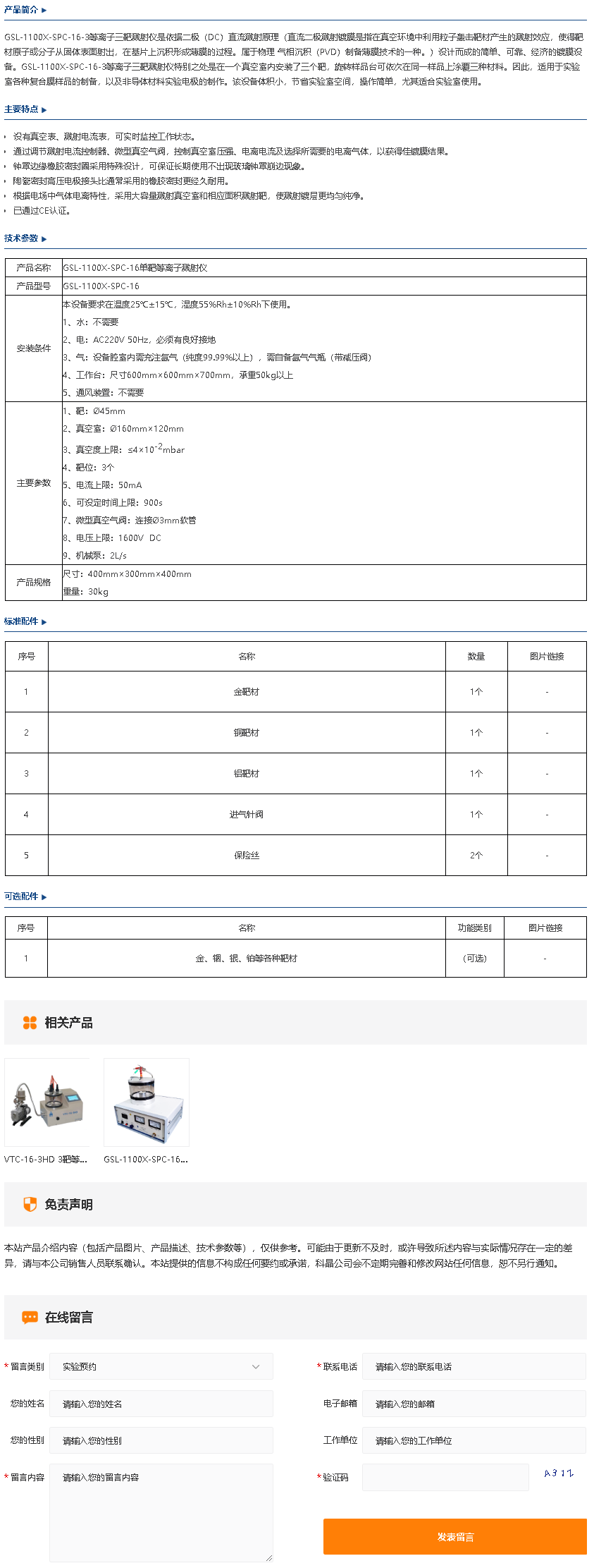 GSL-1100X-SPC-16单靶等离子溅射仪