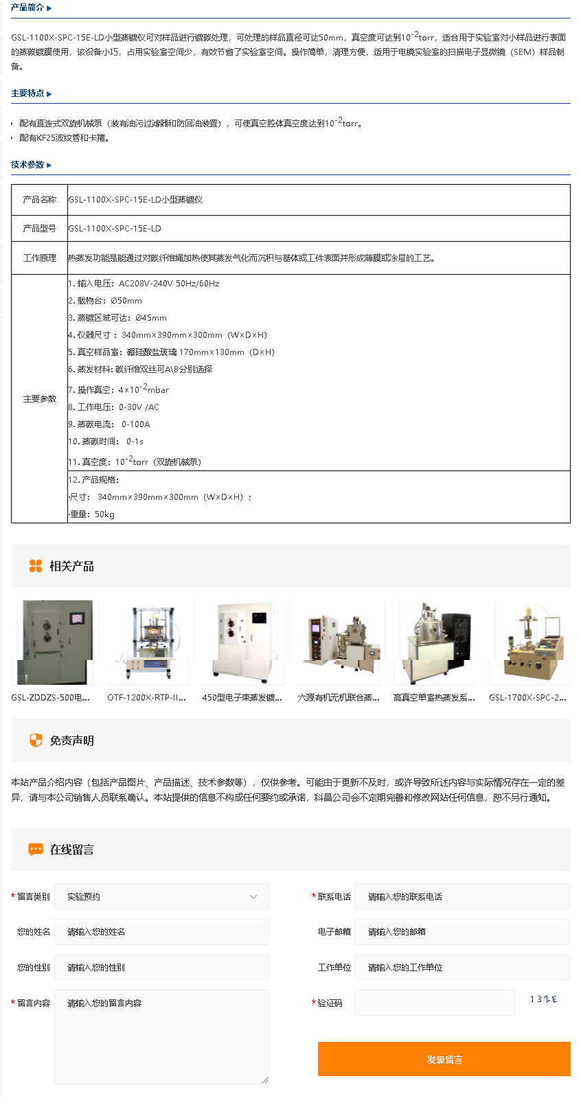 GSL-1100X-SPC-15E-LD小型蒸镀仪