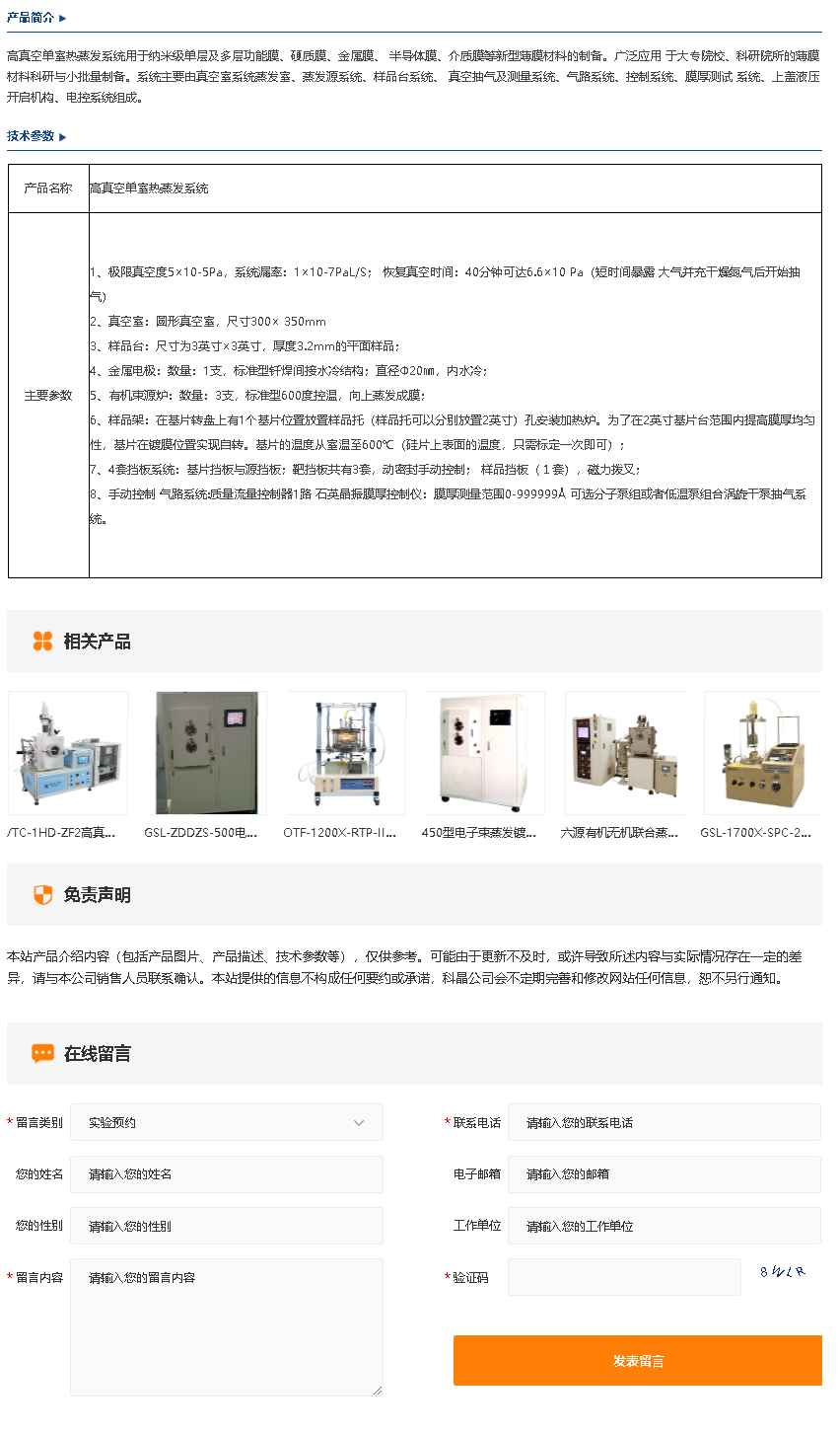 高真空单室热蒸发系统