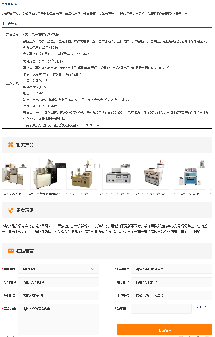 450型电子束蒸发镀膜系统