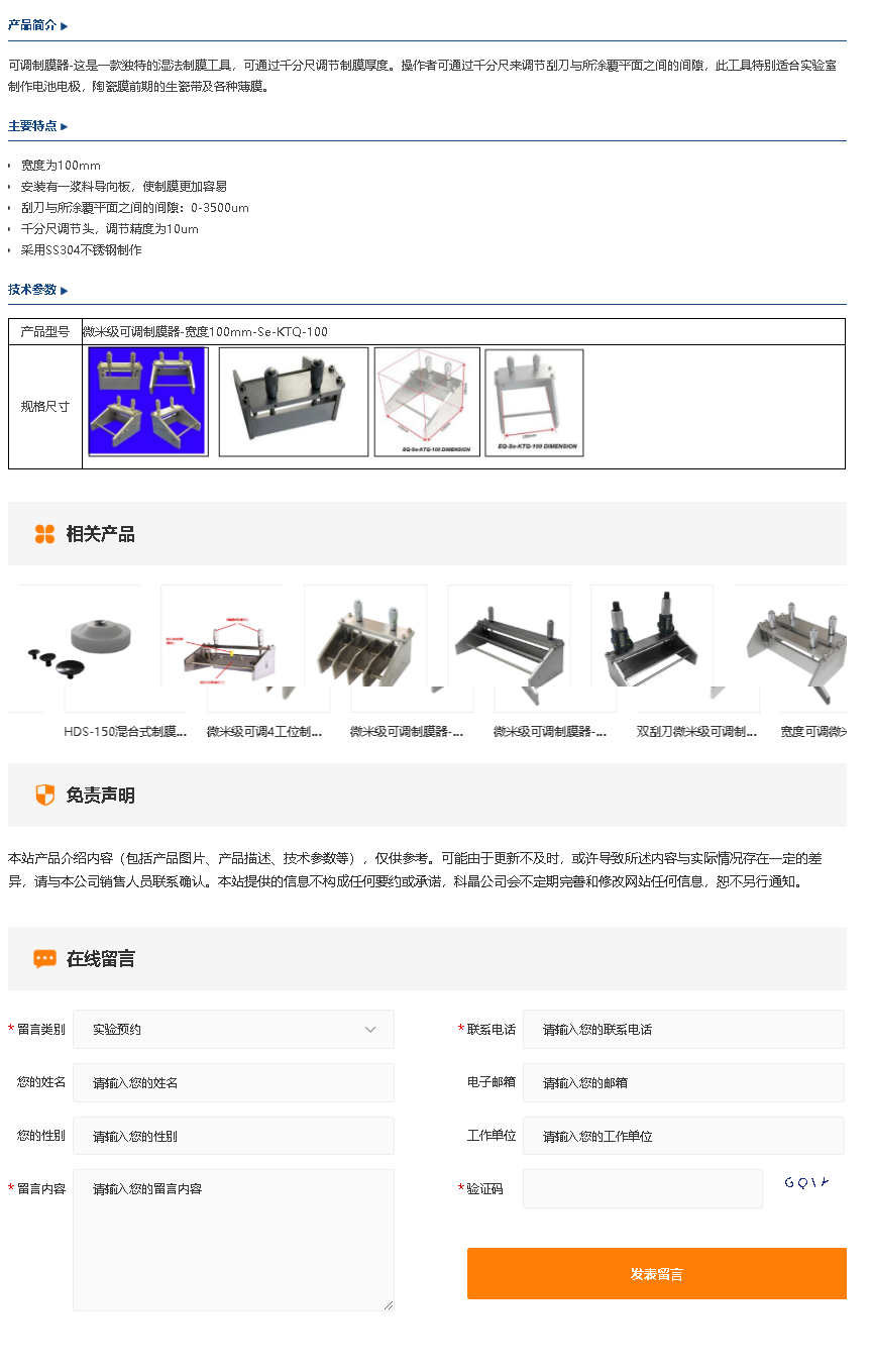 微米级可调制膜器-宽度100mm-Se-KTQ-100