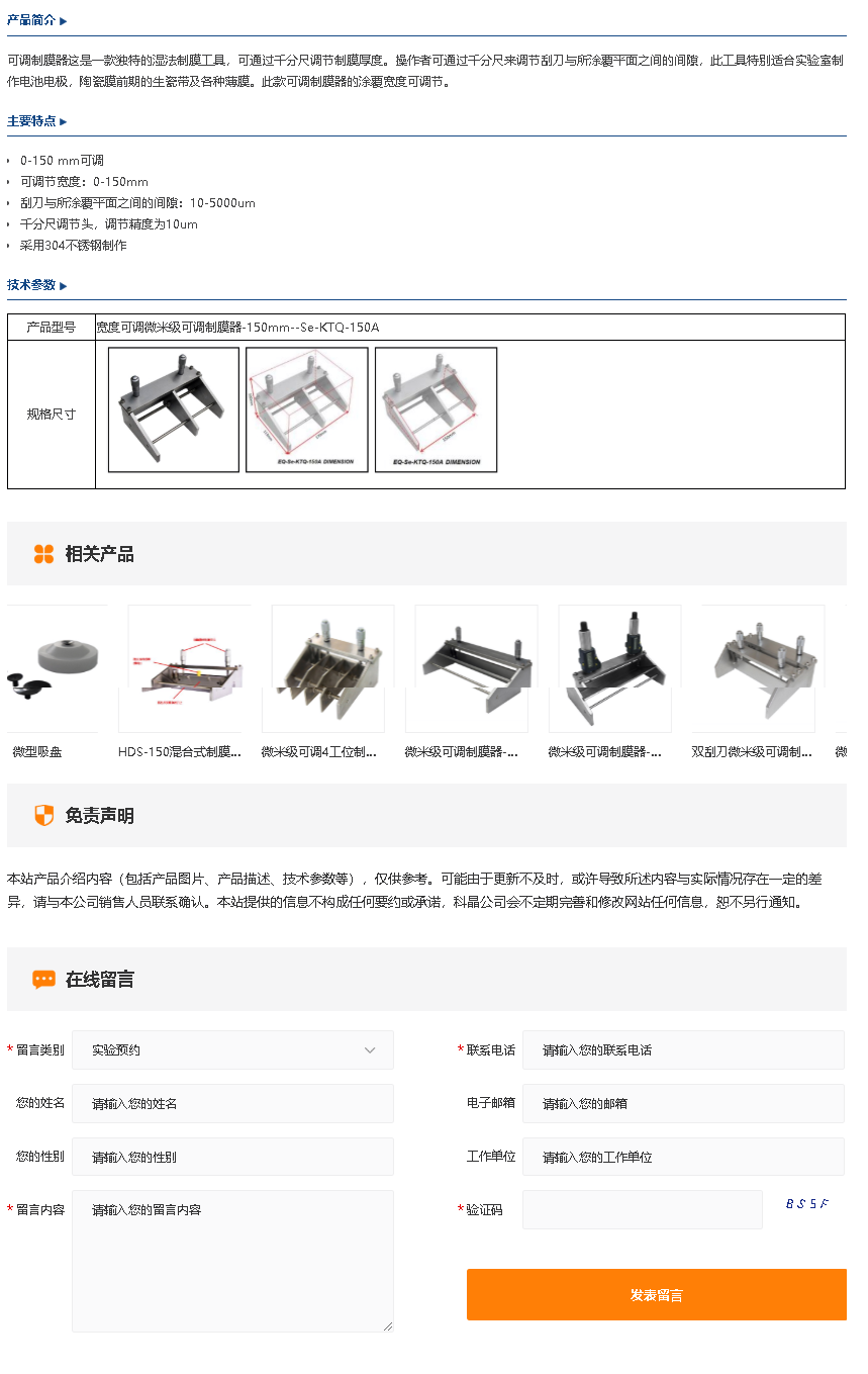 宽度可调微米级可调制膜器-150mm--Se-KTQ-150A