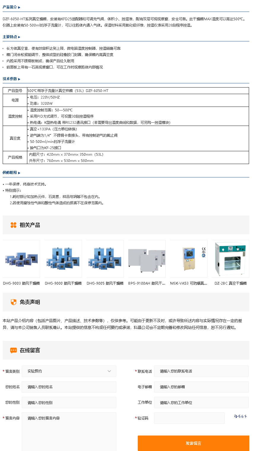 DZF-6050-HT 500℃带浮子流量计真空烘箱(53L)