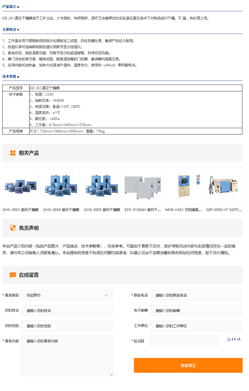 DZ-2BC 真空干燥箱
