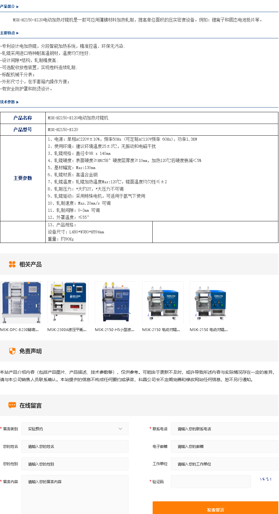 MSK-H2150-E120电动加热对辊机