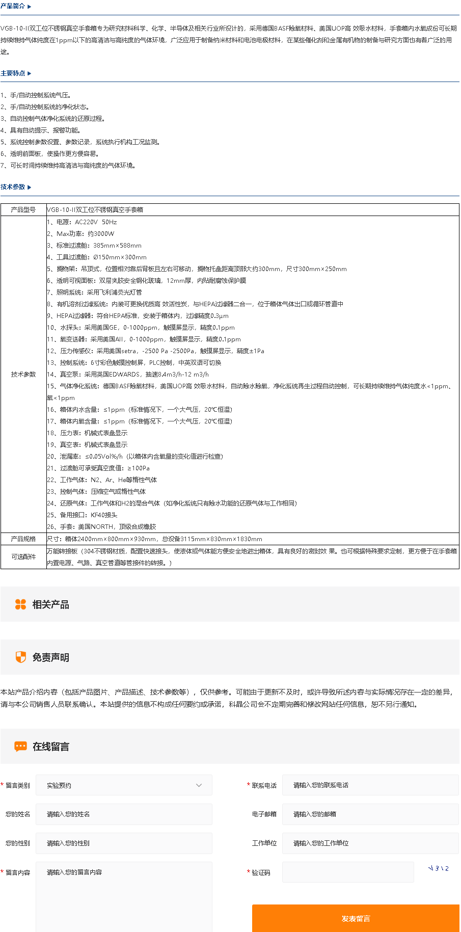 VGB-10-II 双工位不锈钢真空手套箱