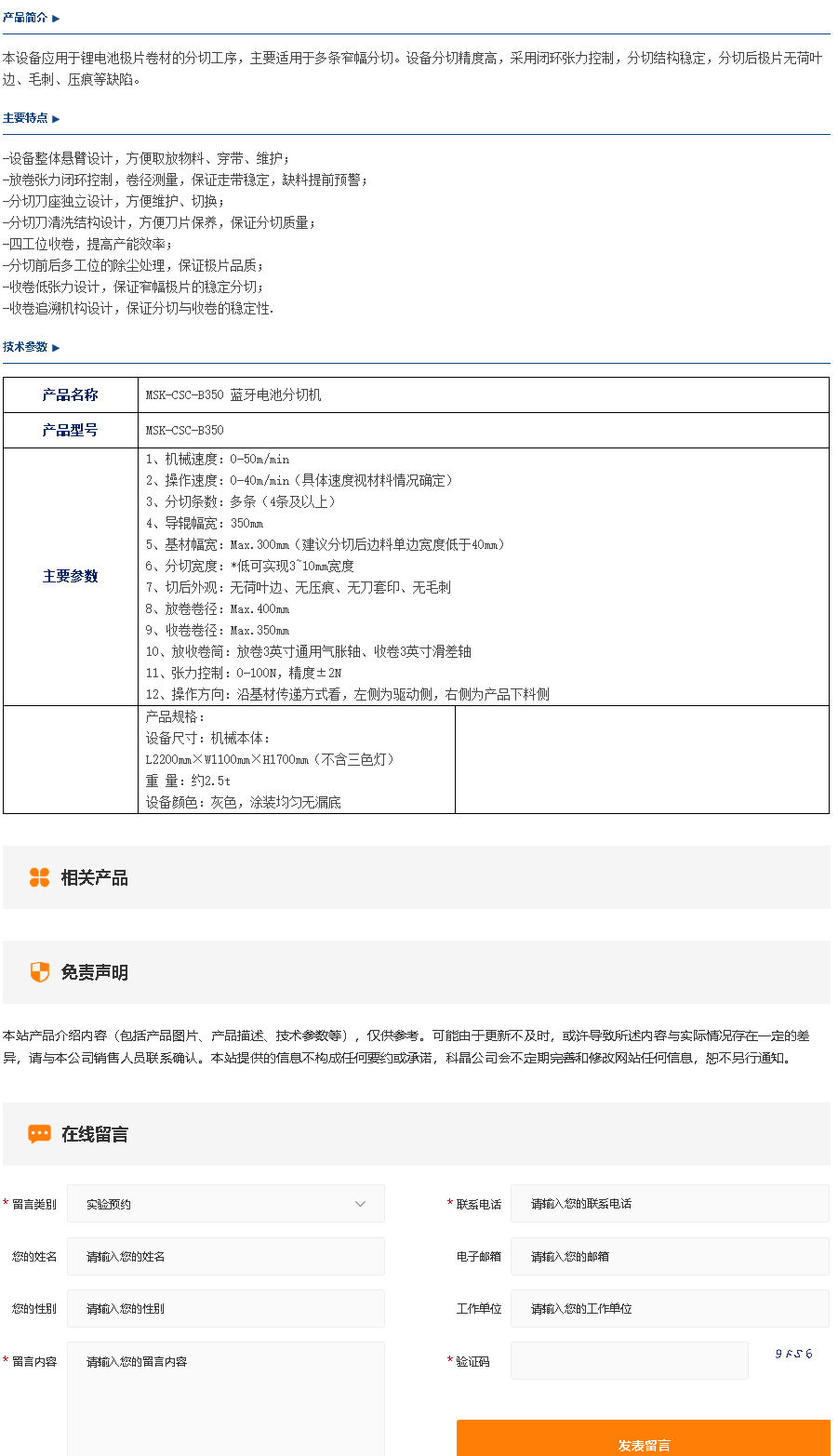 MSK-CSC-B450 连续分切机