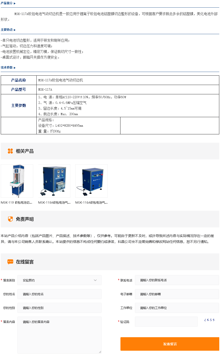 MSK-117A软包电池气动切边机