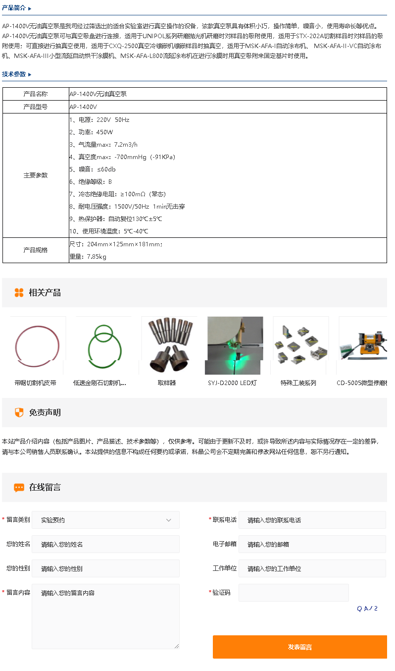 AP-1400V无油真空泵