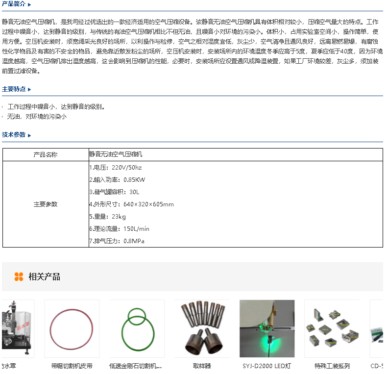 静音无油空气压缩机