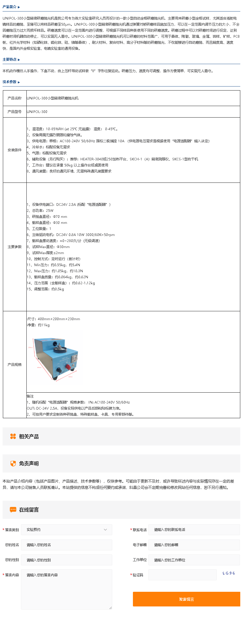 UNIPOL-300 小型精密研磨抛光机