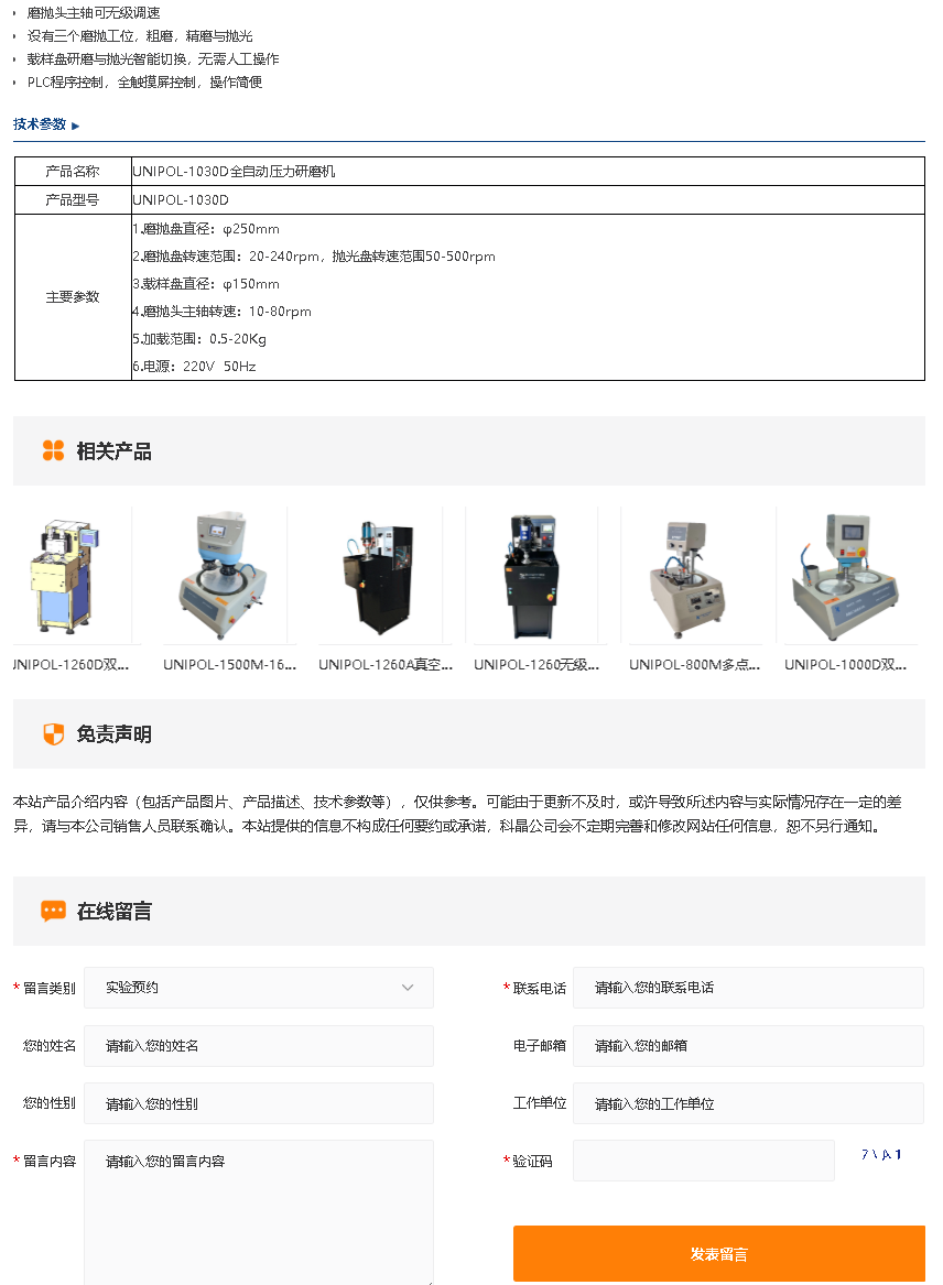 UNIPOL-1030D全自动压力研磨机