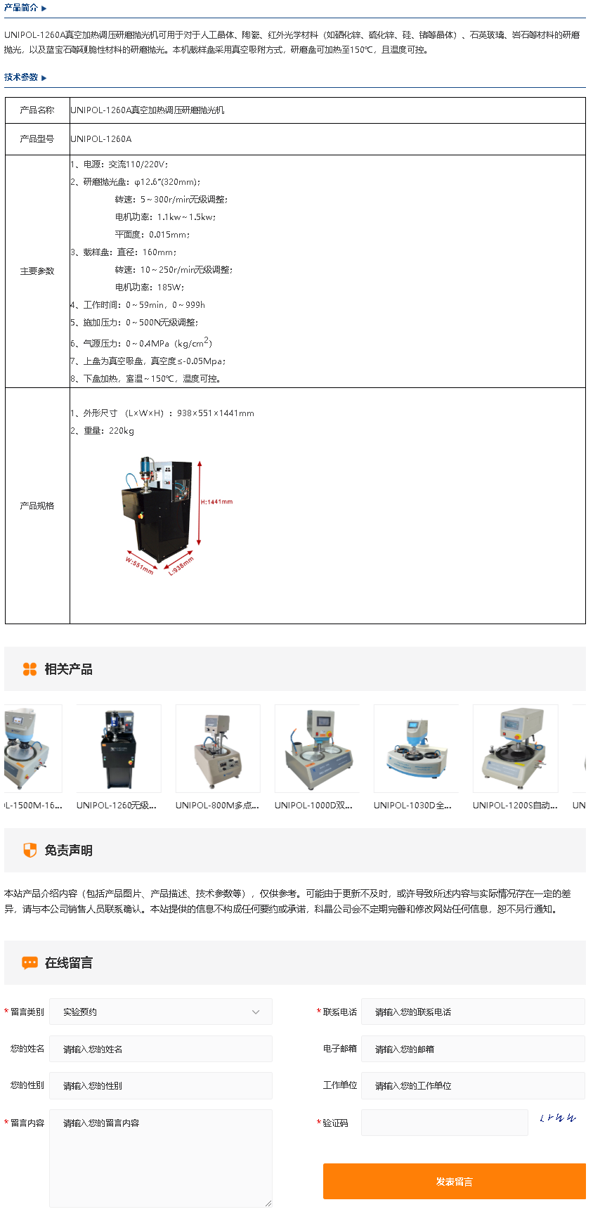 UNIPOL-1260A真空加热调压研磨抛光机