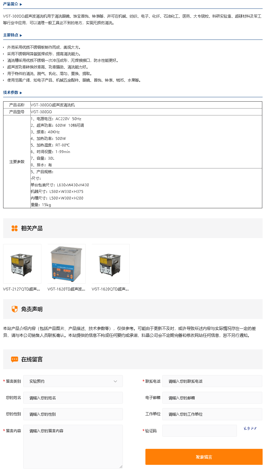 VGT-300DD超声波清洗机
