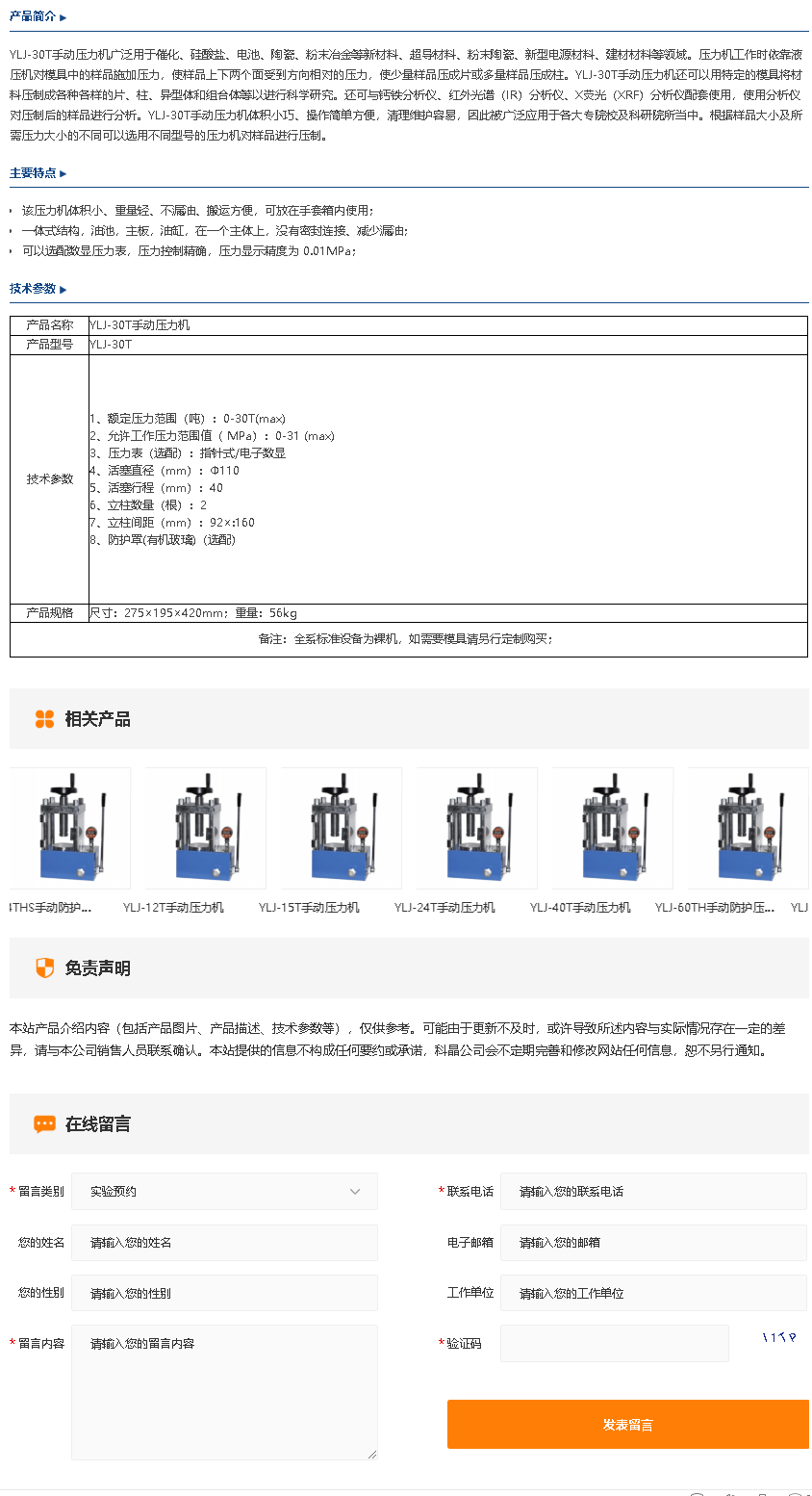 YLJ-30T手动压力机