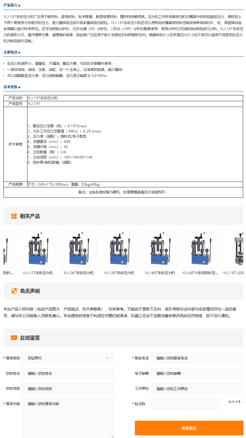 YLJ-15T手动压力机