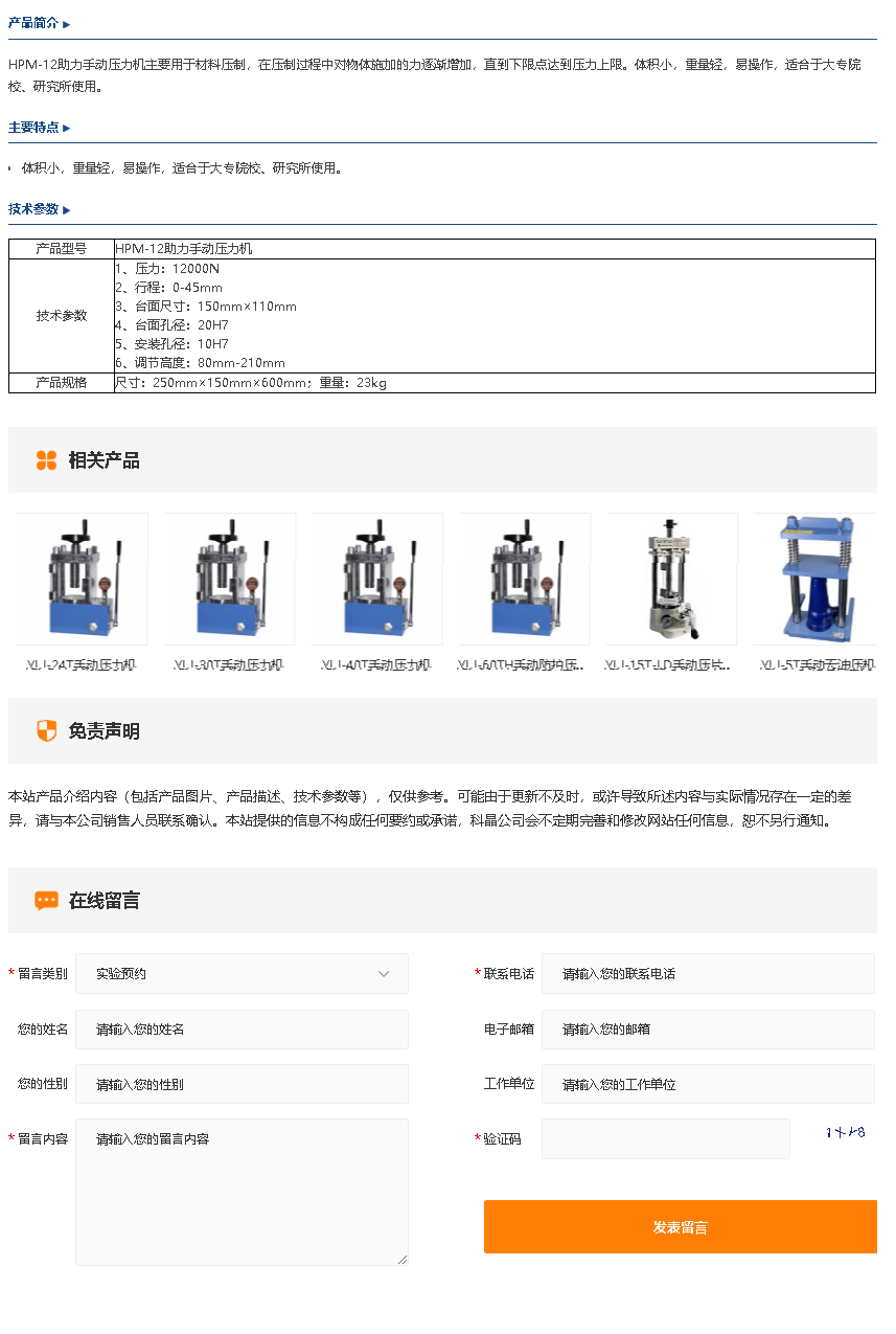 HPM-12助力手动压力机