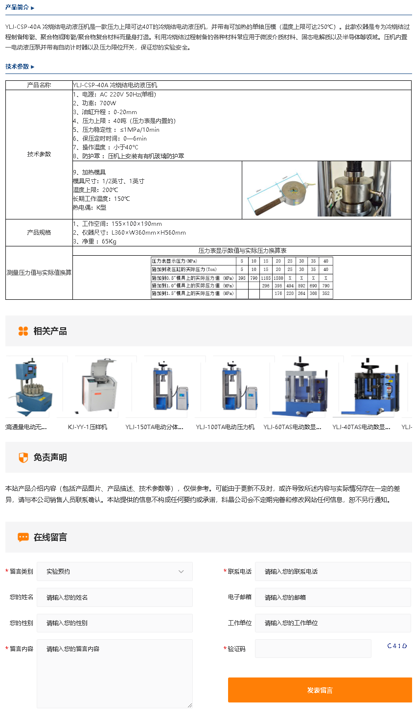 YLJ-CSP-40A冷烧结电动液压机