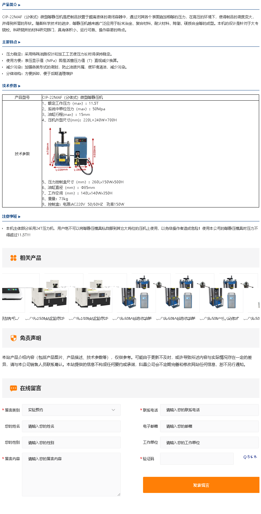 CIP-22MAF(分体式)微型等静压机