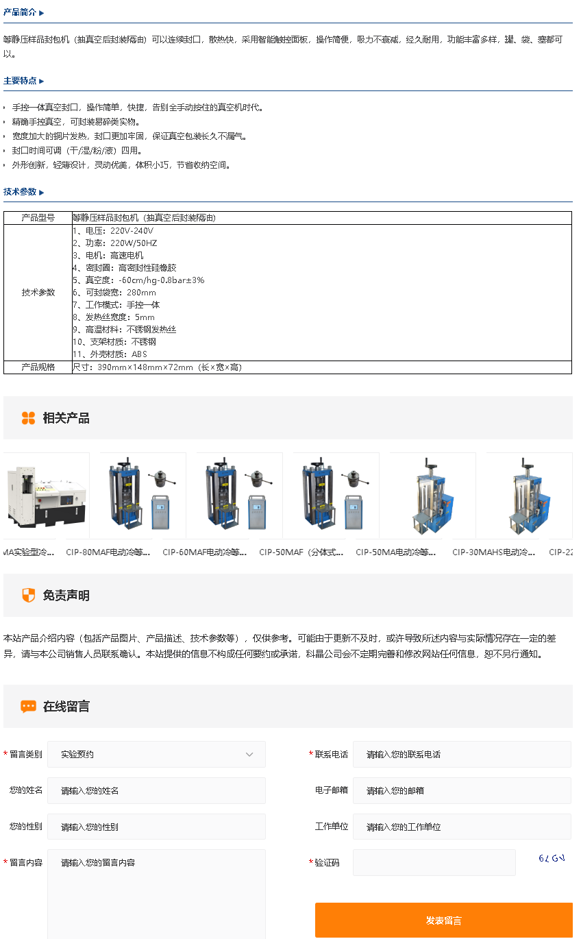 等静压样品封包机(抽真空后封装隔油)