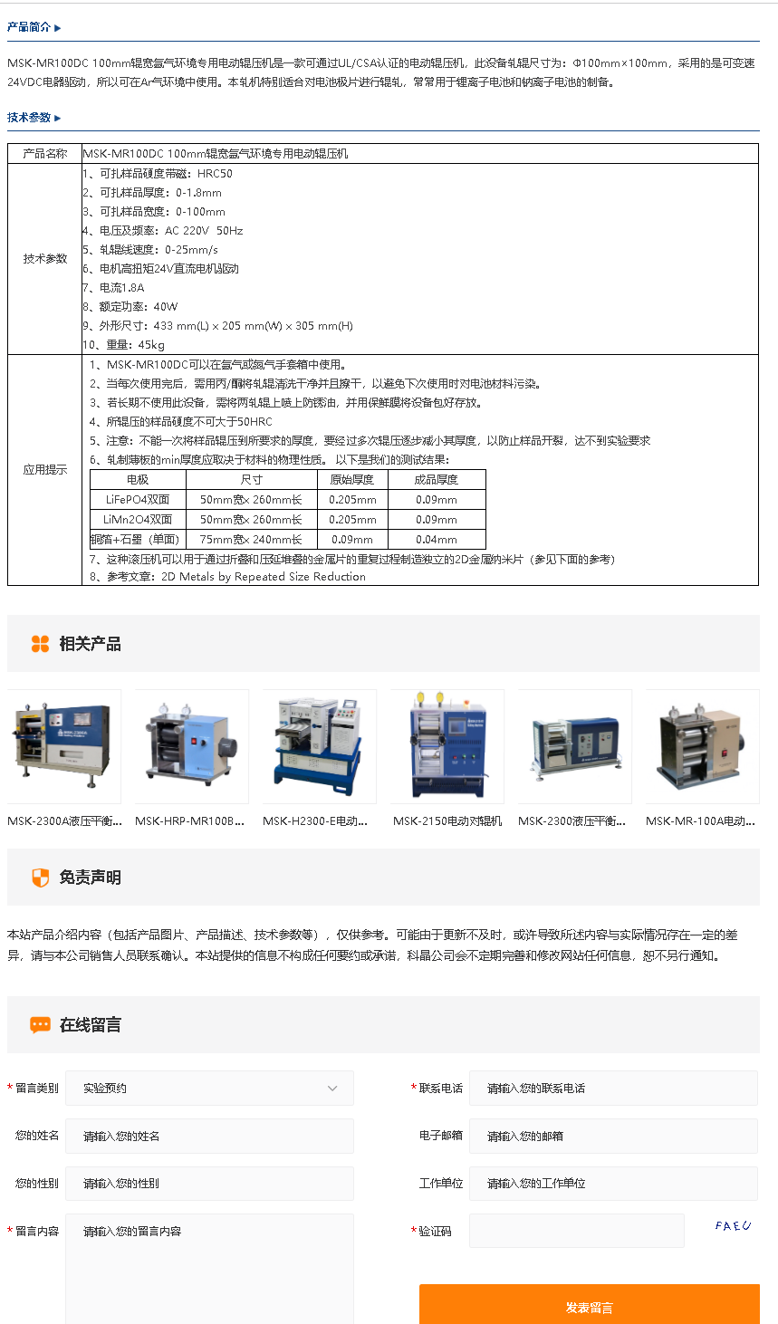 MSK-MR100DC 100mm辊宽氩气环境专用电动辊压机