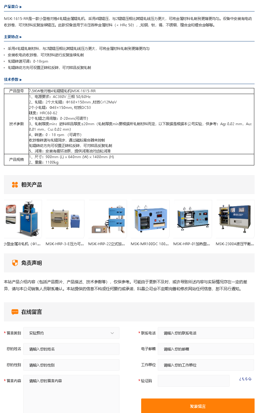7.5KW卷对卷4轧辊辊轧机MSK-1615-RR