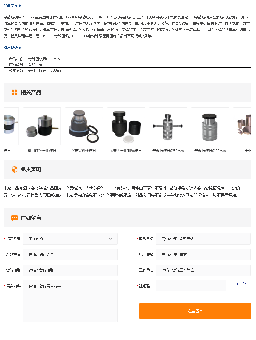 等静压模具Ø30mm