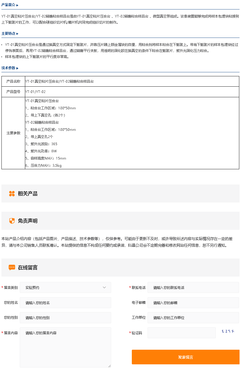 YT-01真空粘片压合台,YT-02精确粘合样品台