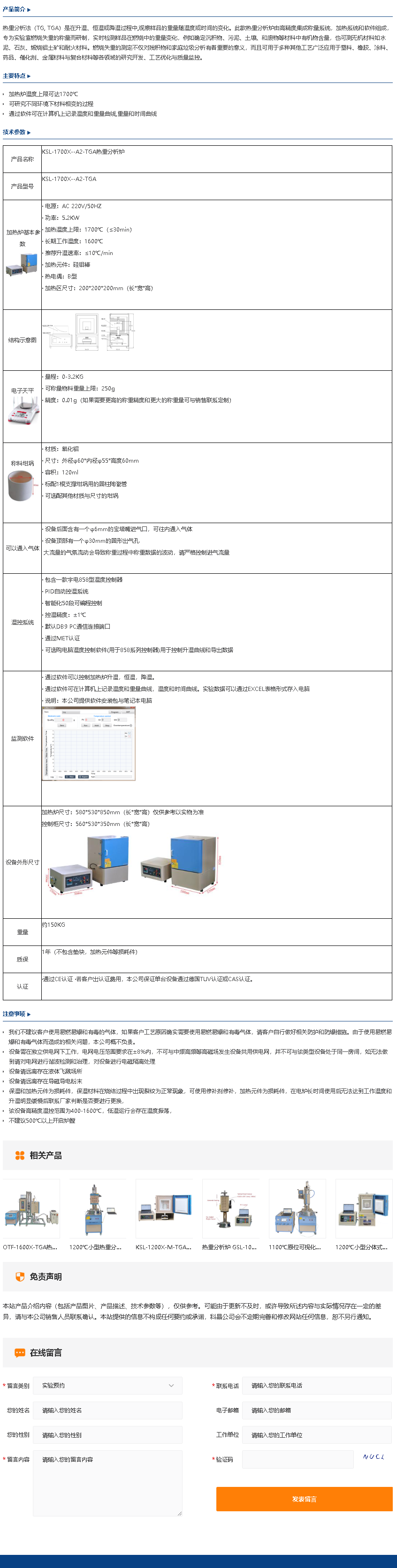 KSL-1700X-A2-TGA热重分析炉