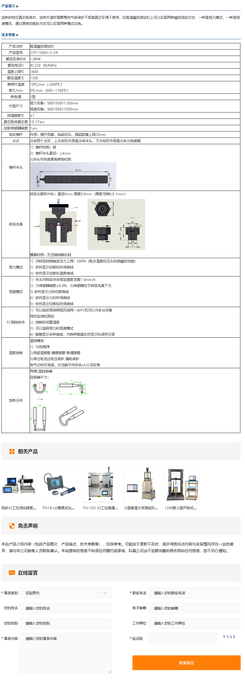 小型高温力学测试仪(小样品,1350℃)OTF-1500X-S-ST