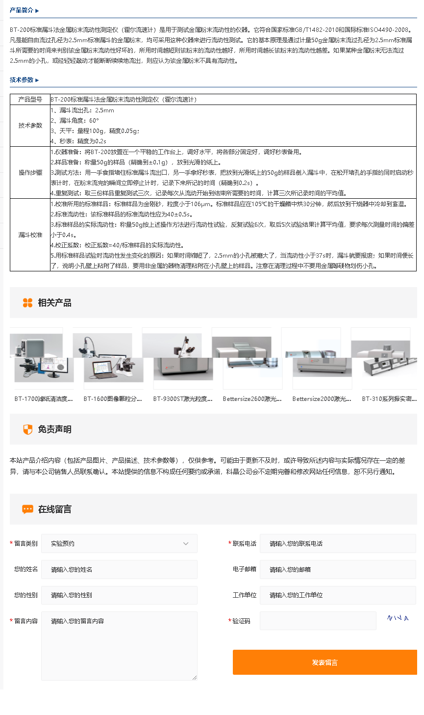 BT-100松装密度仪
