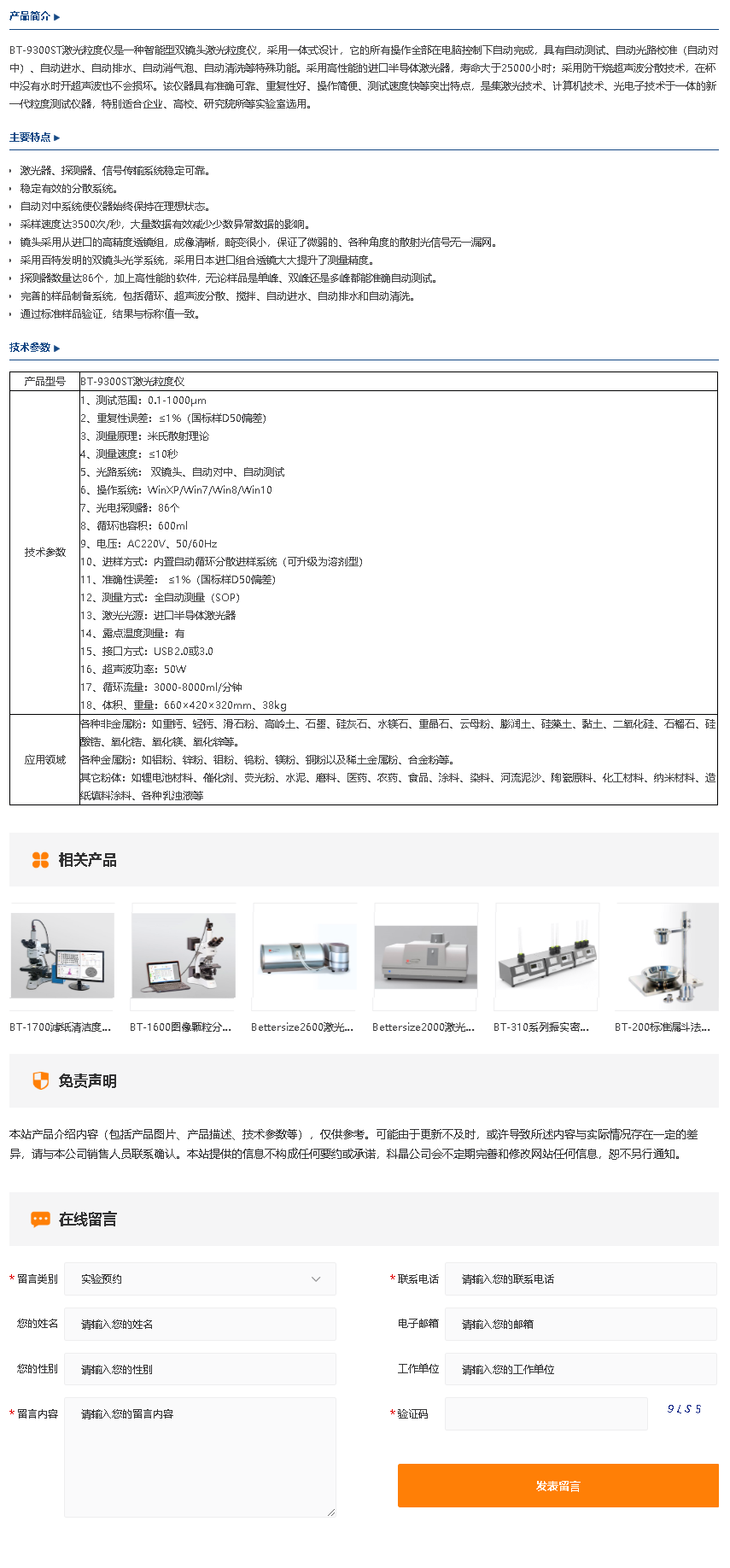 BT-9300ST激光粒度仪