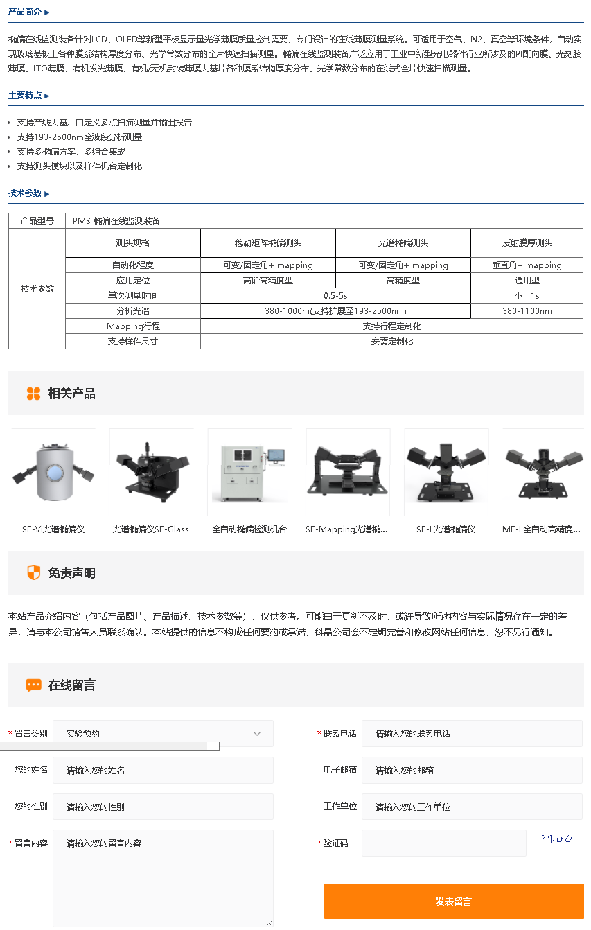 PMS椭偏在线监测装备