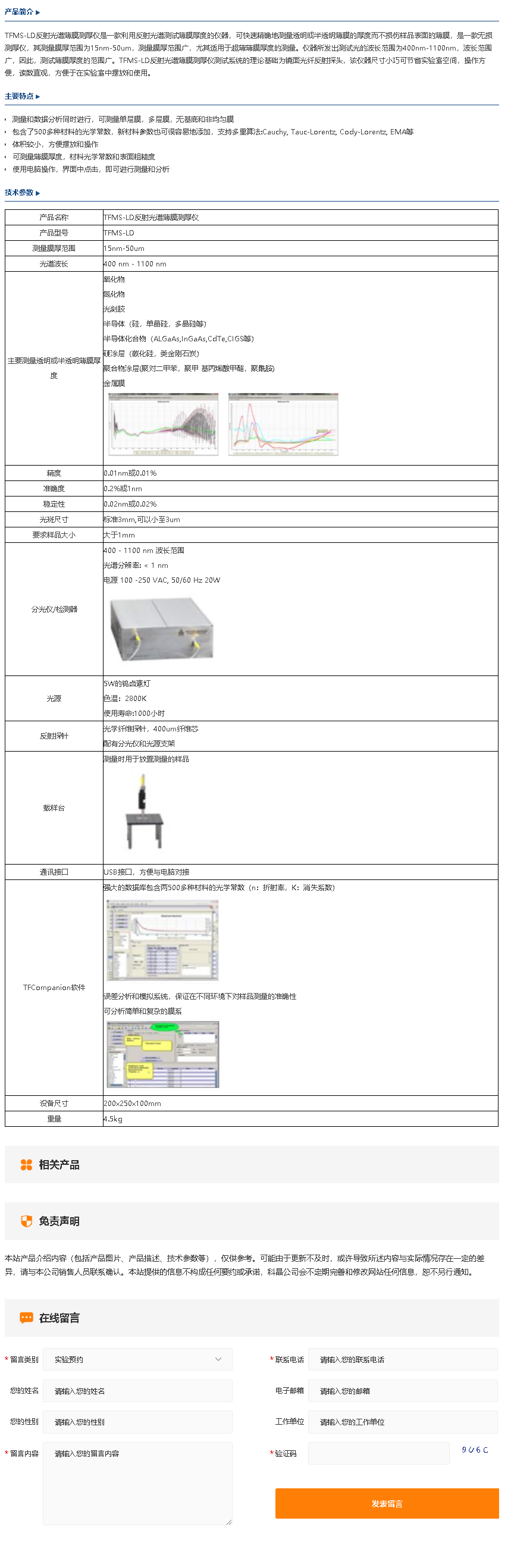 TFMS-LD反射光谱薄膜测厚仪