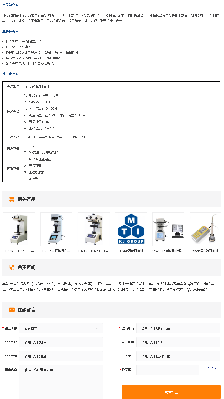 TH220邵氏硬度计