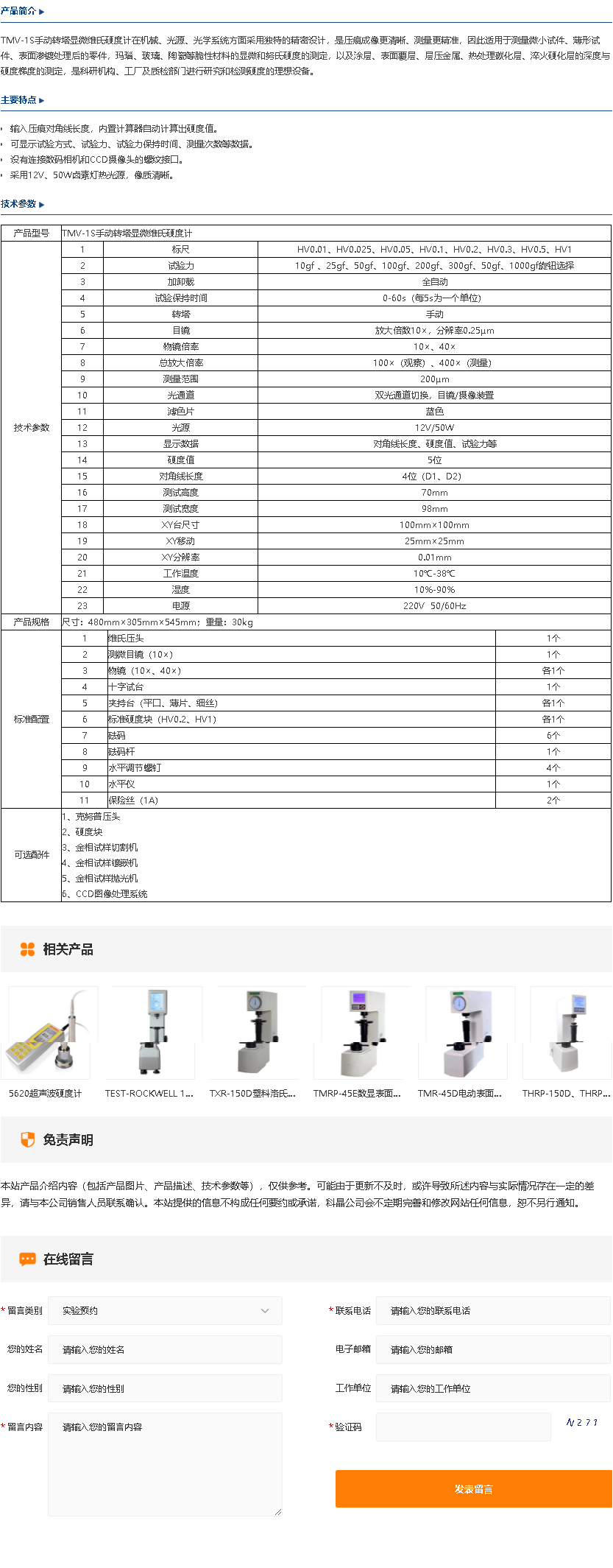 TMV-1S手动转塔显微维氏硬度计