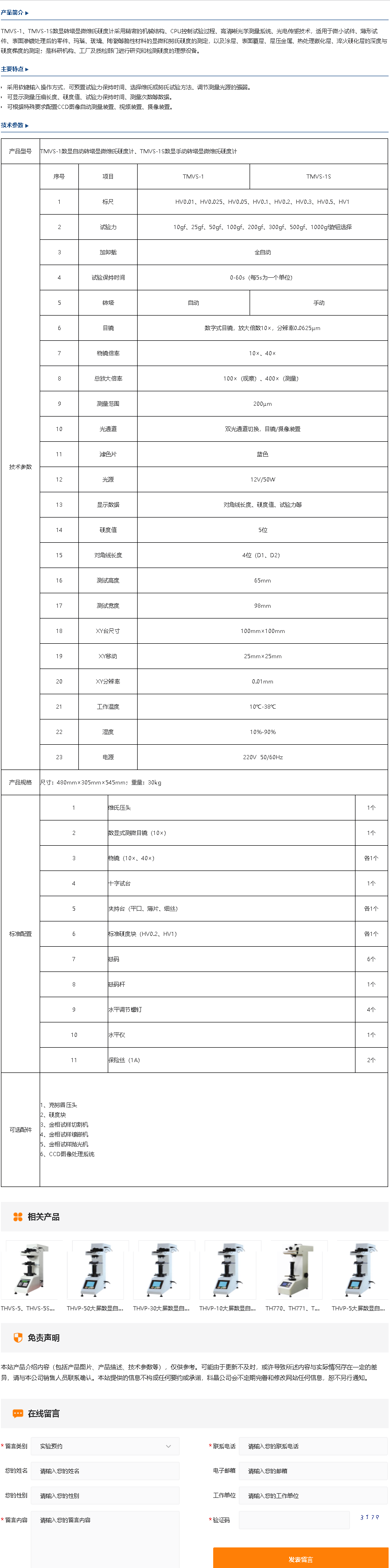 TMVS-1、TMVS-1S数显转塔显微维氏硬度计